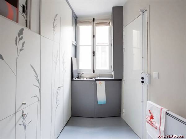Bí quyết để tạo nên sự biến đổi thần kì cho căn phòng đến từ những thiết bị nội thất nhỏ gọn, đa năng và có thể “biến hình” chỉ trong phút chốc. Với kết cấu linh hoạt có thể gấp gọn và biến đổi hình dáng, những bức tường dạng của trượt và các vật dụng nội thất khác đã mang đến một dáng vẻ hoàn toàn ấn tượng và sự tiện dụng miễn chê cho căn hộ này.
