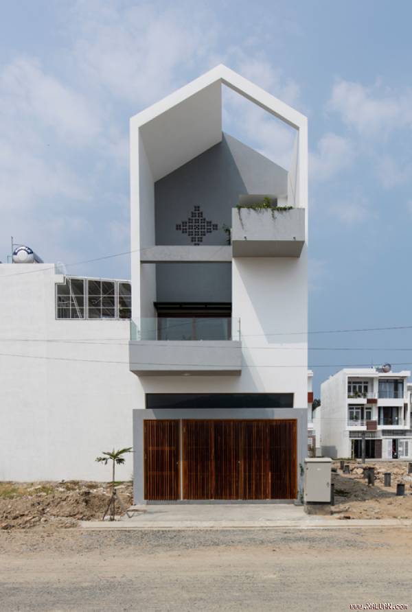 Nằm ngay mặt đường rộng ở thành phố Nha Trang, ngôi nhà 92,5 m2 (5x18,5m) có thiết kế mảng khối hiện đại, không có nhiều cửa sổ, ban công mặt tiền để đảm bảo riêng tư cho chủ nhà.
